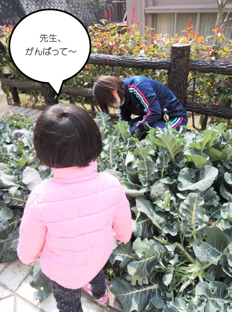 弱々しいブロッコリー苗を、患者さまと当院園児でやさしくそっと植えましたが・・・
