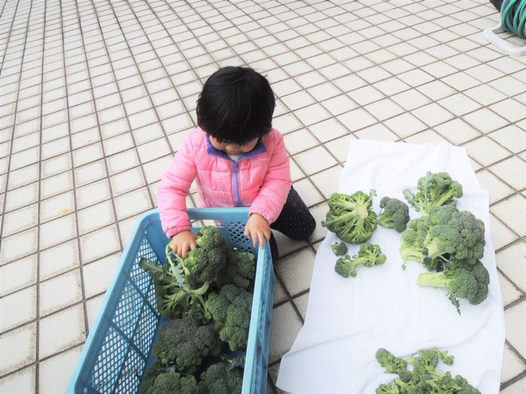 ブロッコリーをかごに入れるお手伝いをしてもらい、栄養室へ届けました。