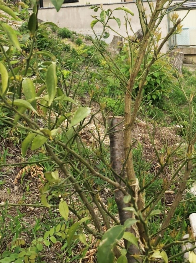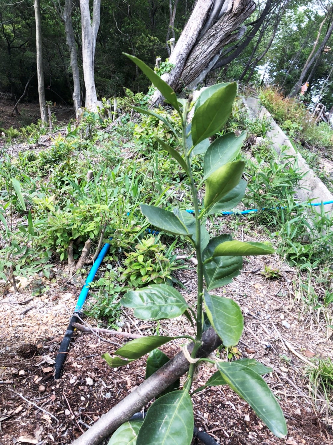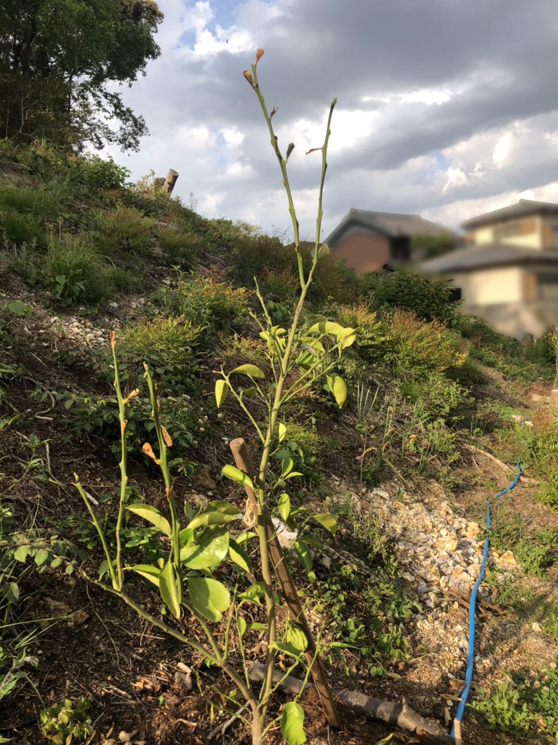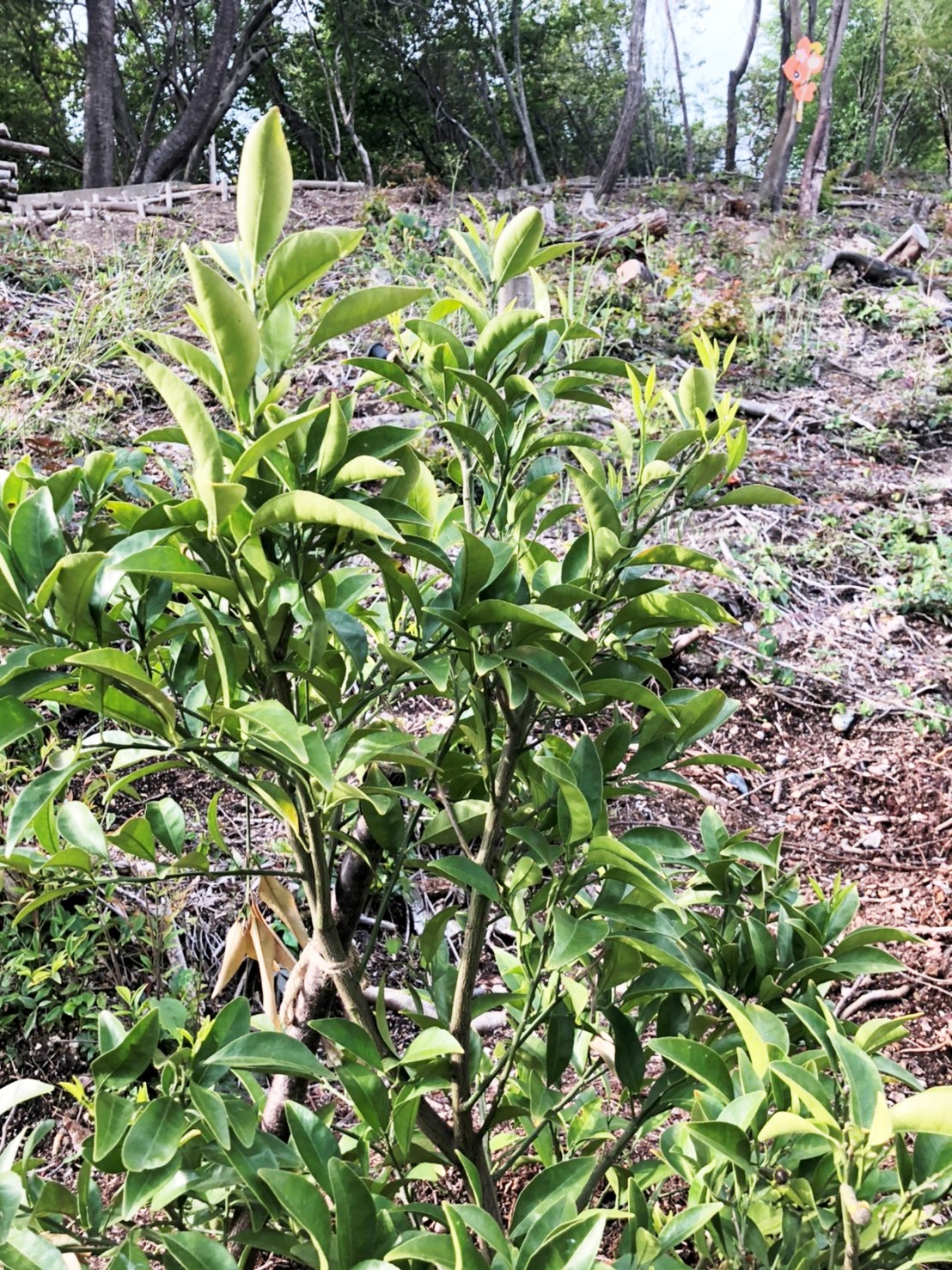 当院ではこの春、こんごう棟裏山に4種類の柑橘類の苗木を植えました。
