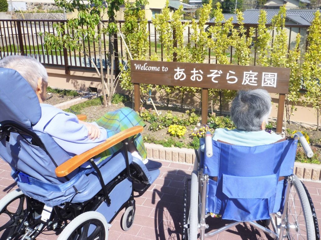 お天気が良い日にあおぞら庭園(屋上庭園)に散歩に出かけました。色とりどりに咲く花や木々をご覧になりよろこんでおられたので、次回は桜のお花見をしましょうと約束しました。