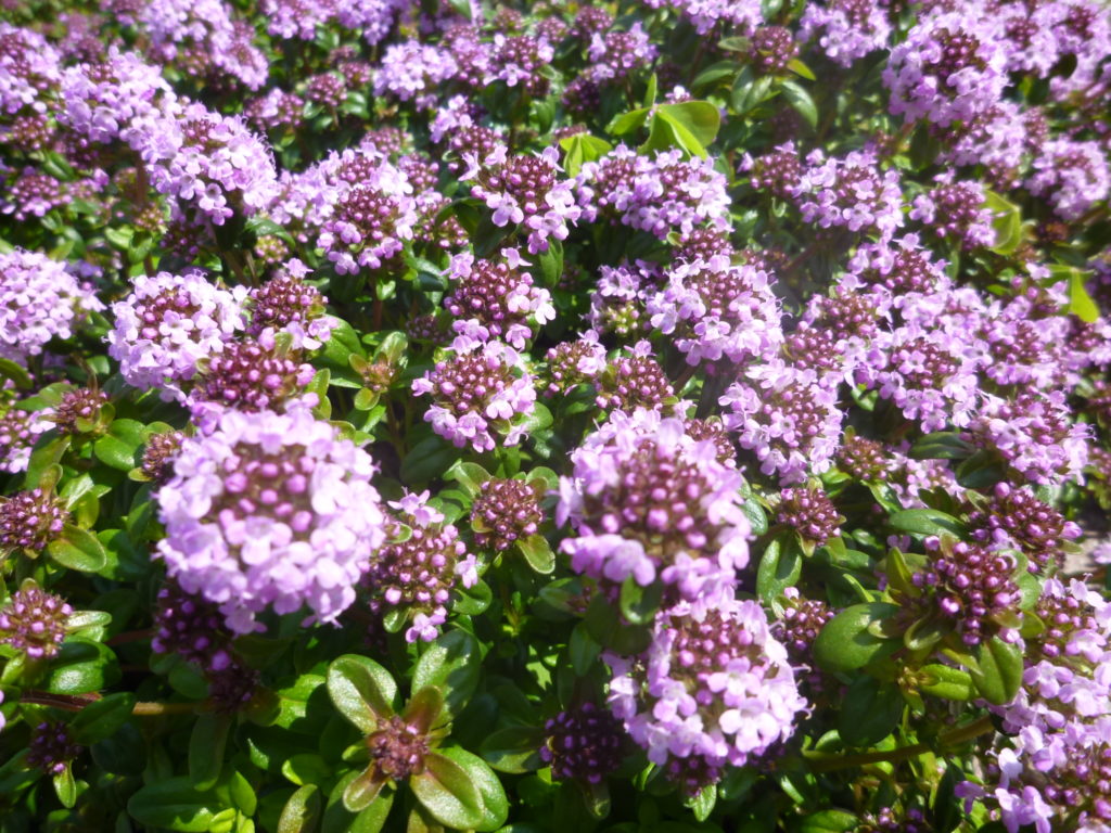 りんご広場の円形花壇にはタイムの花が咲いていました・・・