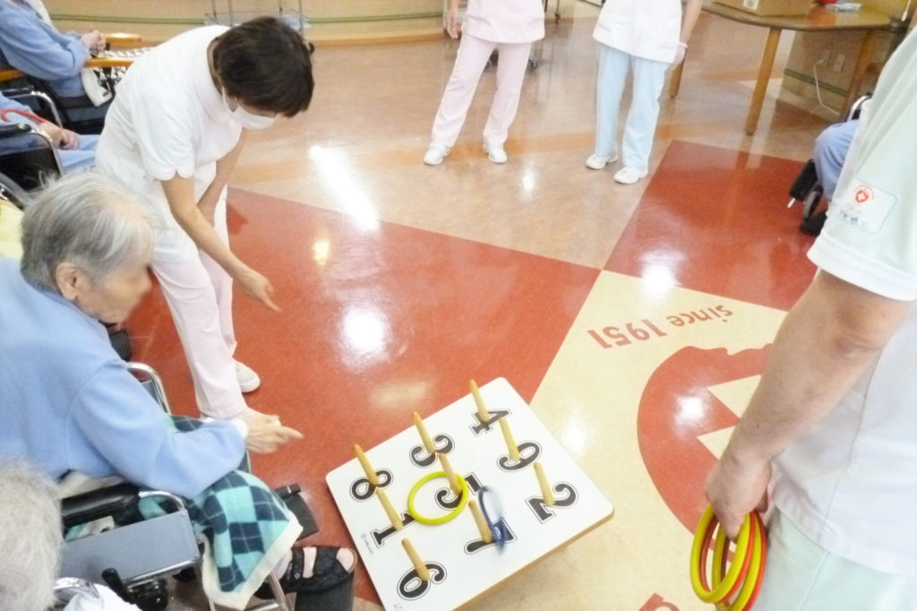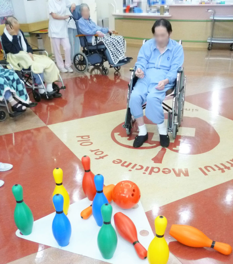 病棟だよりvol.7 ~こんごう棟3階~ 2020.04.10 お知らせ 食事前には口腔体操を行い、食べるために必要な筋肉を動かしています。 先日、面会再開を心待ちにされている患者さまに、レクリエーションで楽しい時間をお過ごしいただければと、輪投げを行いました。 続いてボーリング。 皆さんお上手で、 次々にピンを倒されて、たくさんの拍手や歓声で盛り上がりました。 今後も楽しんでいただけるよう考えていきます。