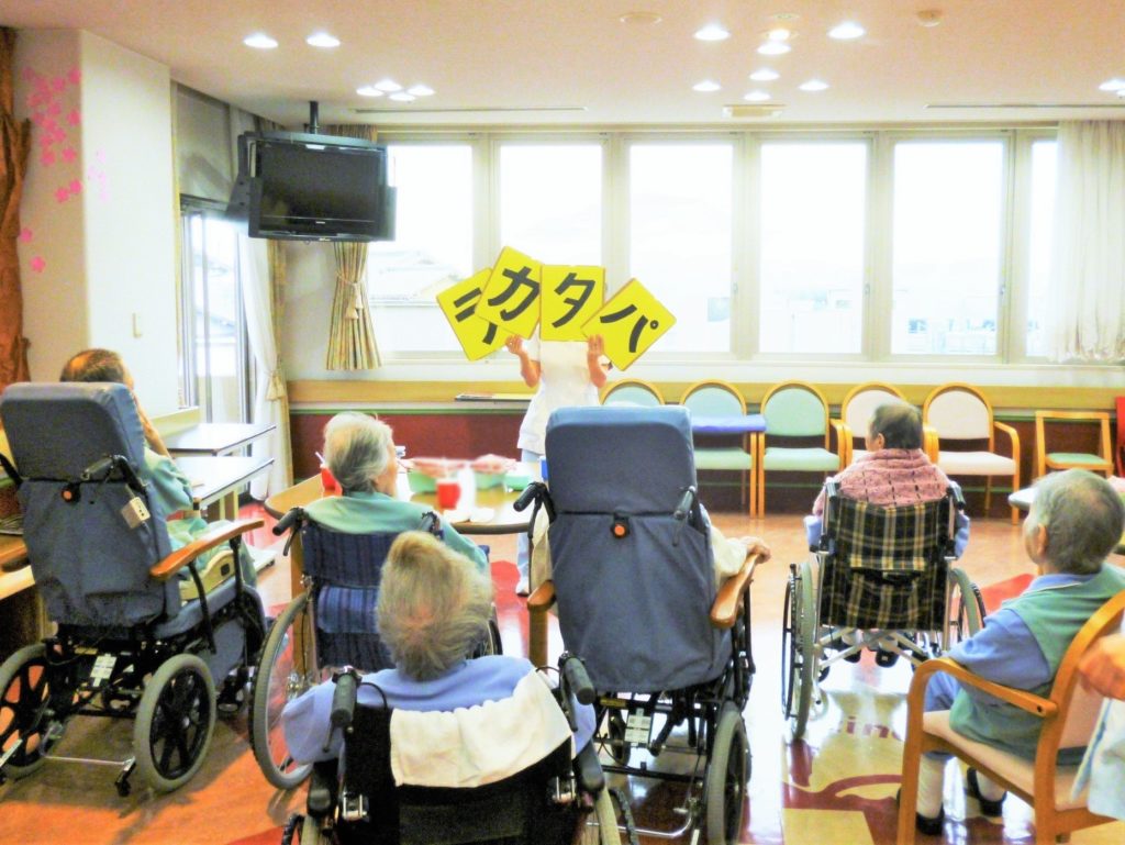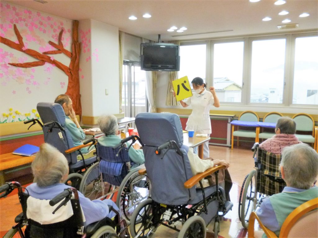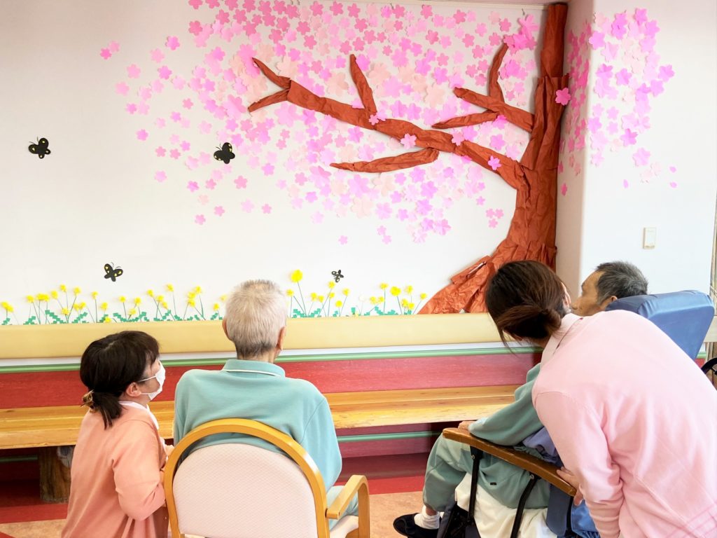 病棟だよりvol.8 ~こんごう棟2階~ 2020.04.12 お知らせ 毎日、食事前に「パタカラ体操」を患者さまと行っています。 「パタカラ体操」は食べ物をのどの奥まで運ぶ動作を鍛えるための発音による運動です。 春を感じていただこうと患者さまと一緒に桜とたんぽぽを折り紙で制作しました。 壁いっぱいに並ぶたんぽぽと満開の桜でデイルームがぐんと明るくなりました。 時折、患者さまとお花見を楽しんでいます。