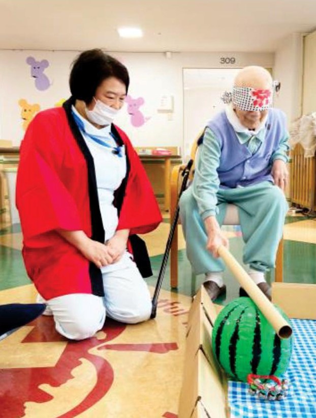 かつらぎ棟3階はスイカ割りゲームや、