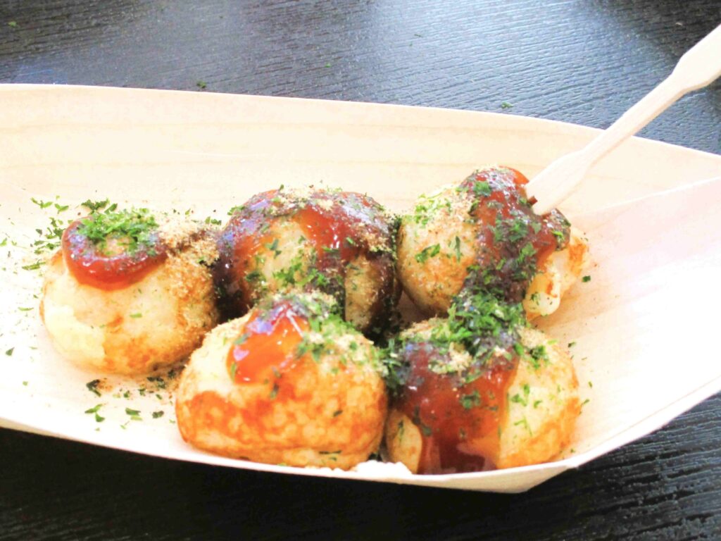香ばしいソースの匂いが漂う中、あつあつのたこ焼きをお召し上がりいただきました。