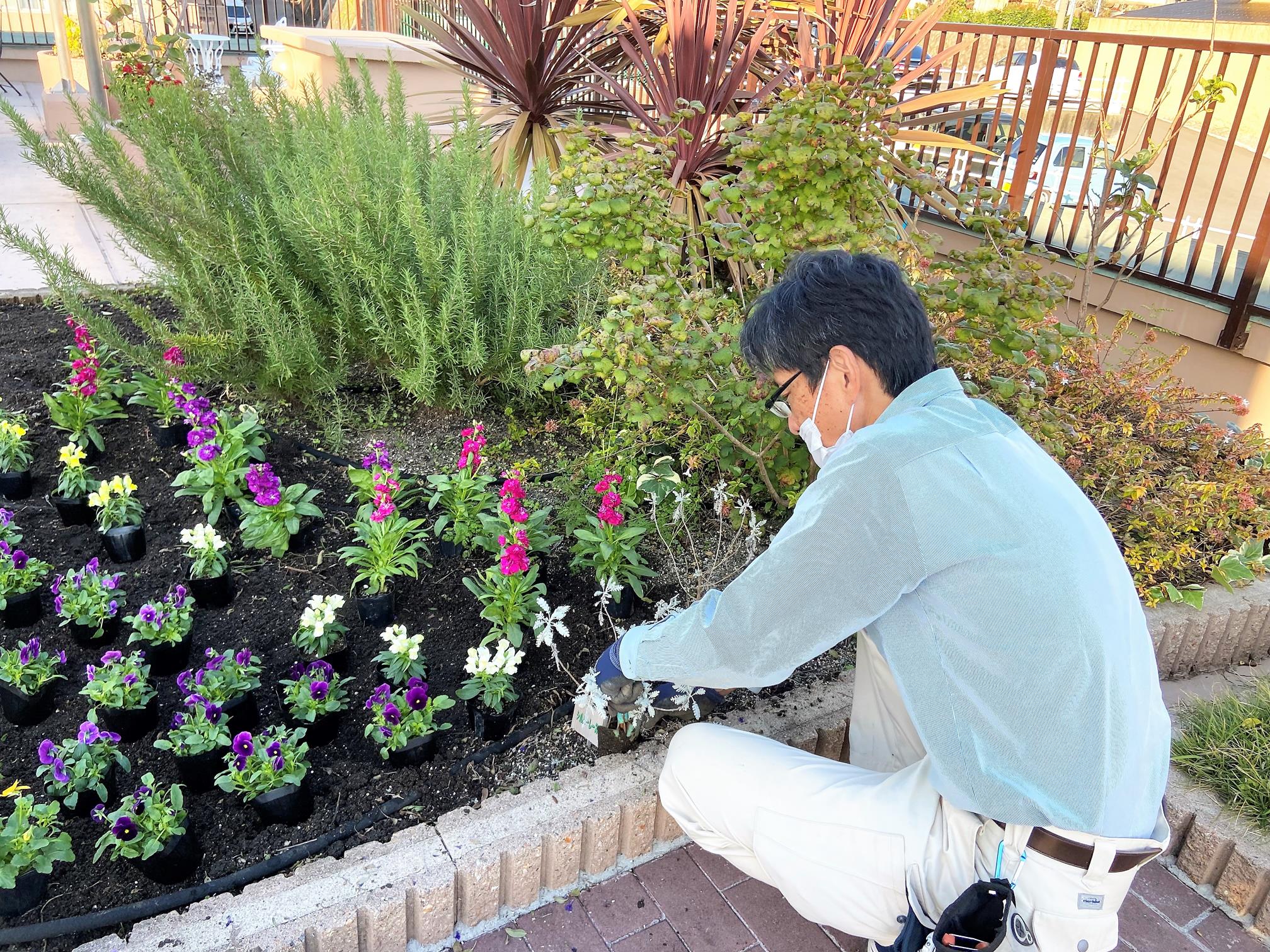 当院の庭園では、環境管理スタッフがたくさんの花を育てています。