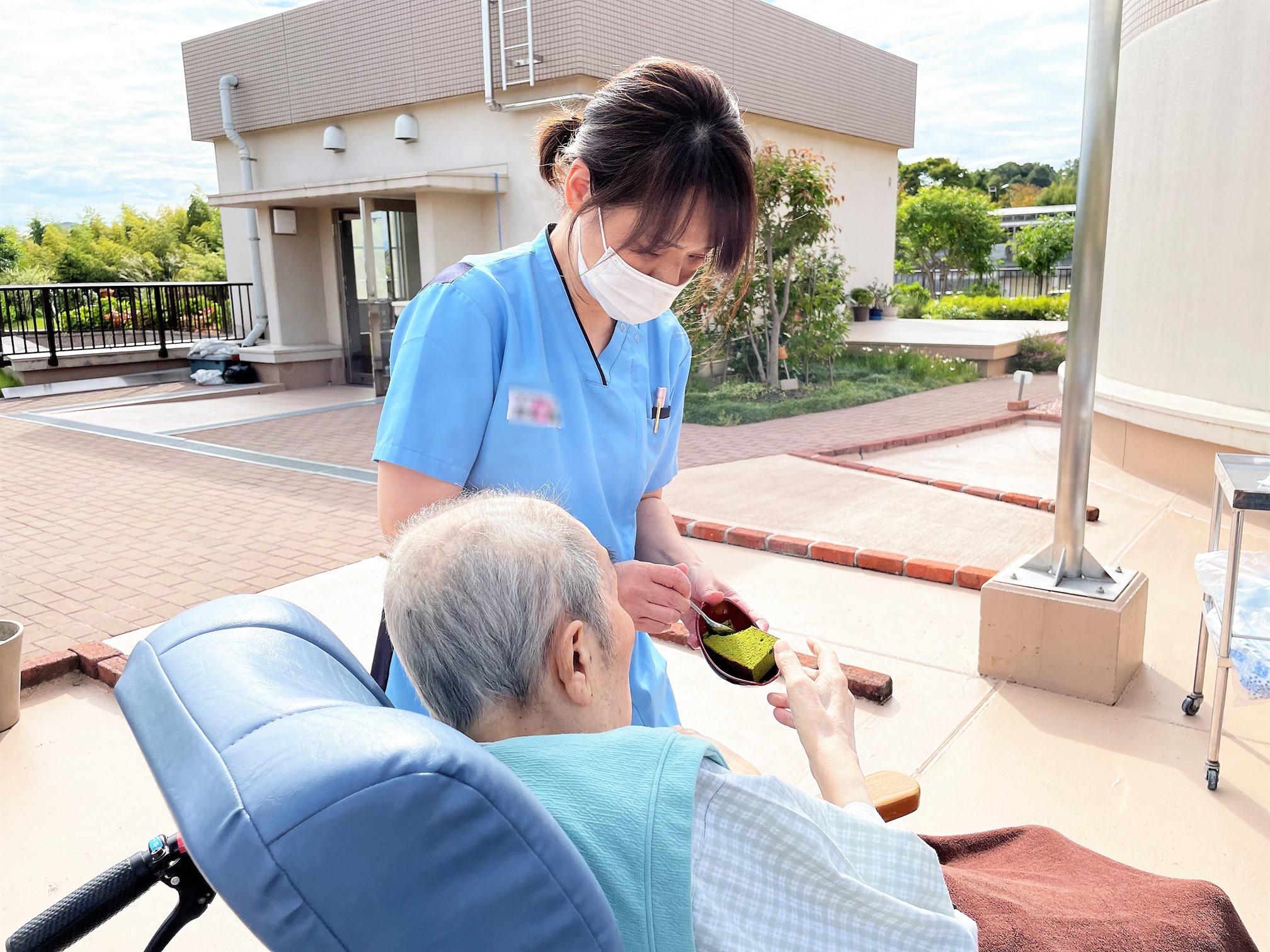 うとうとと眠っていた患者さまは、秋風が吹き抜けるなか、ラベンダーの香りが広がるとパッと目を開けられました。