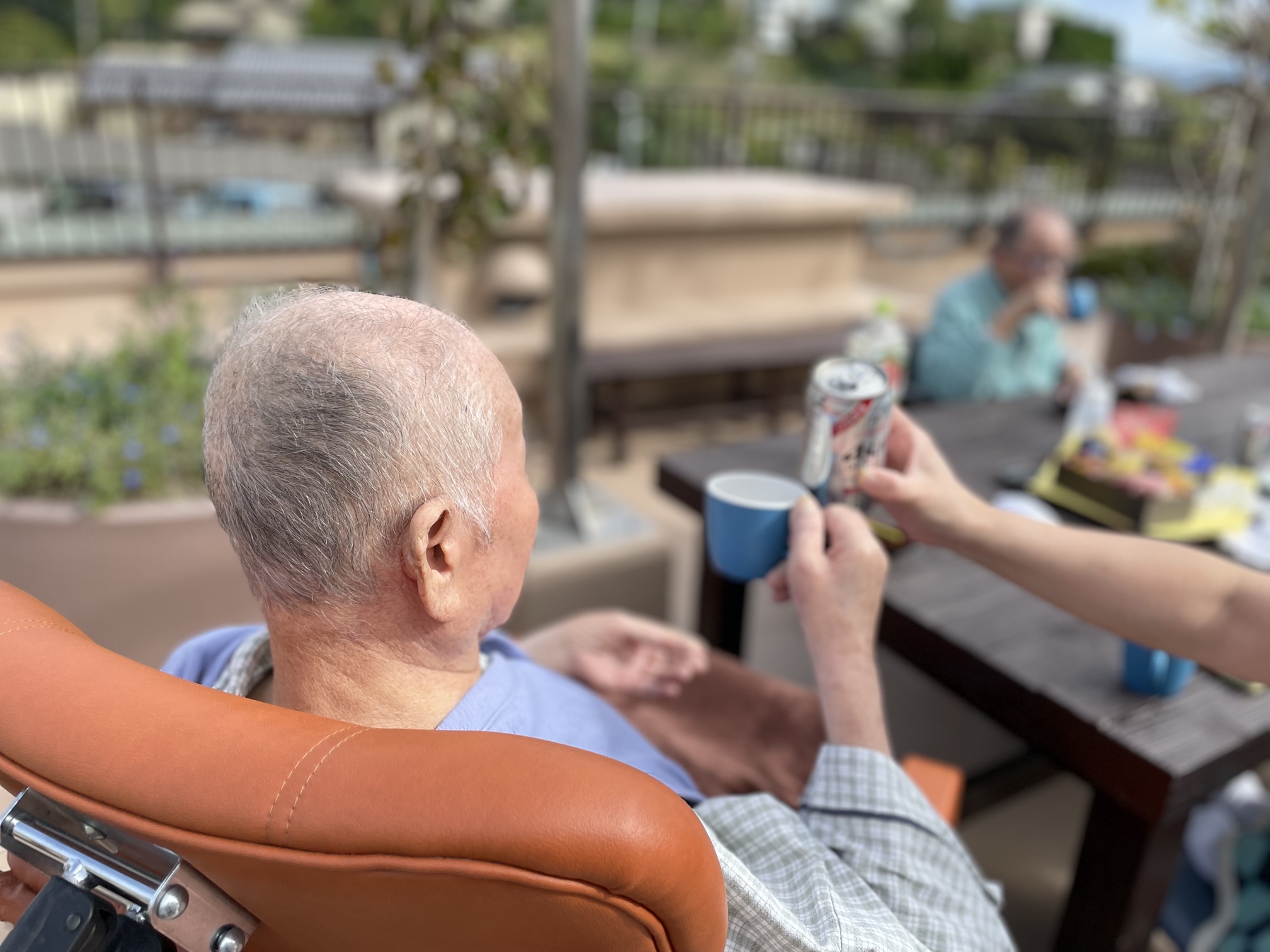 「お天気が良くて気持ちいいです」「ビール(ノンアルコール)が飲みたかったんや、おいしいわ」とお喜びいただきました。