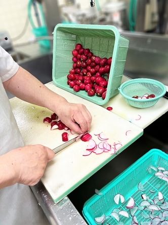 菜園一面に育った「ラディッシュ」を サラダに 2022.05.14 お知らせ 患者さまの体の負担が少なくなるよう設計した高さのある菜園(ハナミズキガーデン)で、ラディッシュの収穫をしました。 ラディッシュは収穫しやすく、赤いカブの色がかわいらしいと患者さまから喜ばれています。 今回は、当院で育てた新玉ねぎと合わせてサラダでお召し上がりいただきました。 広報誌「りんご便り5月号」より
