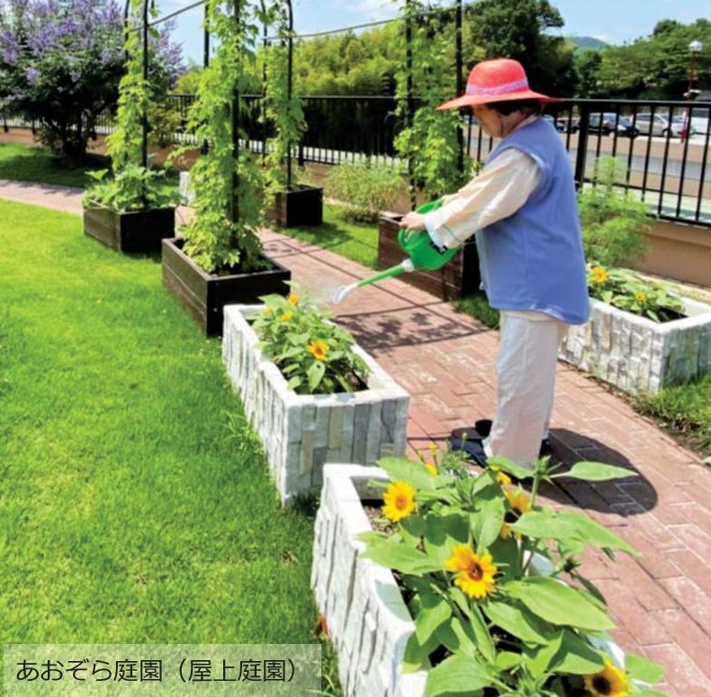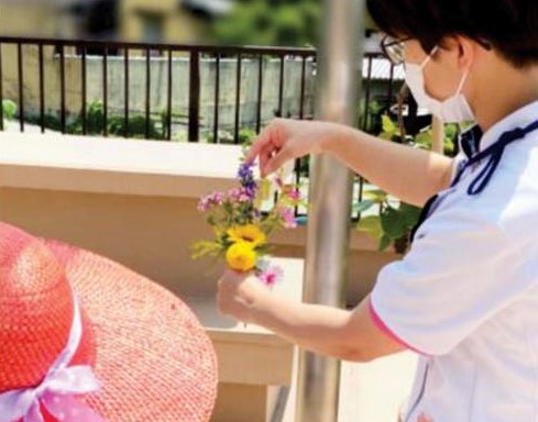 足を運びたくなる庭園 2020.08.11 お知らせ 生け花をされていた患者さまは、庭園の花を摘んで、アレンジのレッスンをするのが恒例。 患者さまが先生で、スタッフが生徒です。「先生、これでいいですか?」「そのお花は後ろのほうがいいわね」青空の下は気持ちも弾みます。 こちらは、院内保育所(みどり保育所)の園庭です。毎朝、先生と一緒に園児もお花の水やりのお手伝いをしています。 関屋病院ニューズレター「りんご便り7月号」より