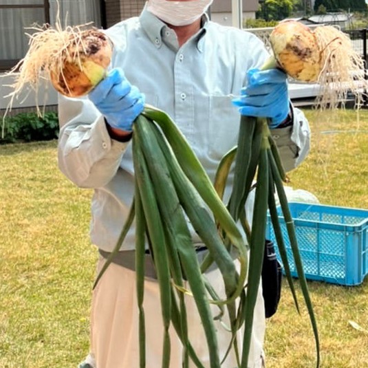 関屋の菜園は、実りの春 2022.05.13 お知らせ 当院には大小合わせて4つの菜園があります。 そのうちの一つ、ふたかみ棟にあるりんご広場では「見る」「育てる」「食べる」が、ひとつになったフランスのポタジェガーデンという家庭菜園を参考に野菜・花・果物など、さまざまな植物を混植しています。 別の場所では、タマネギの苗がすくすくと育ち、2Lサイズ(直径9㎝以上)のタマネギを100個も収穫することができました。 広報誌「りんご便り5月号」より