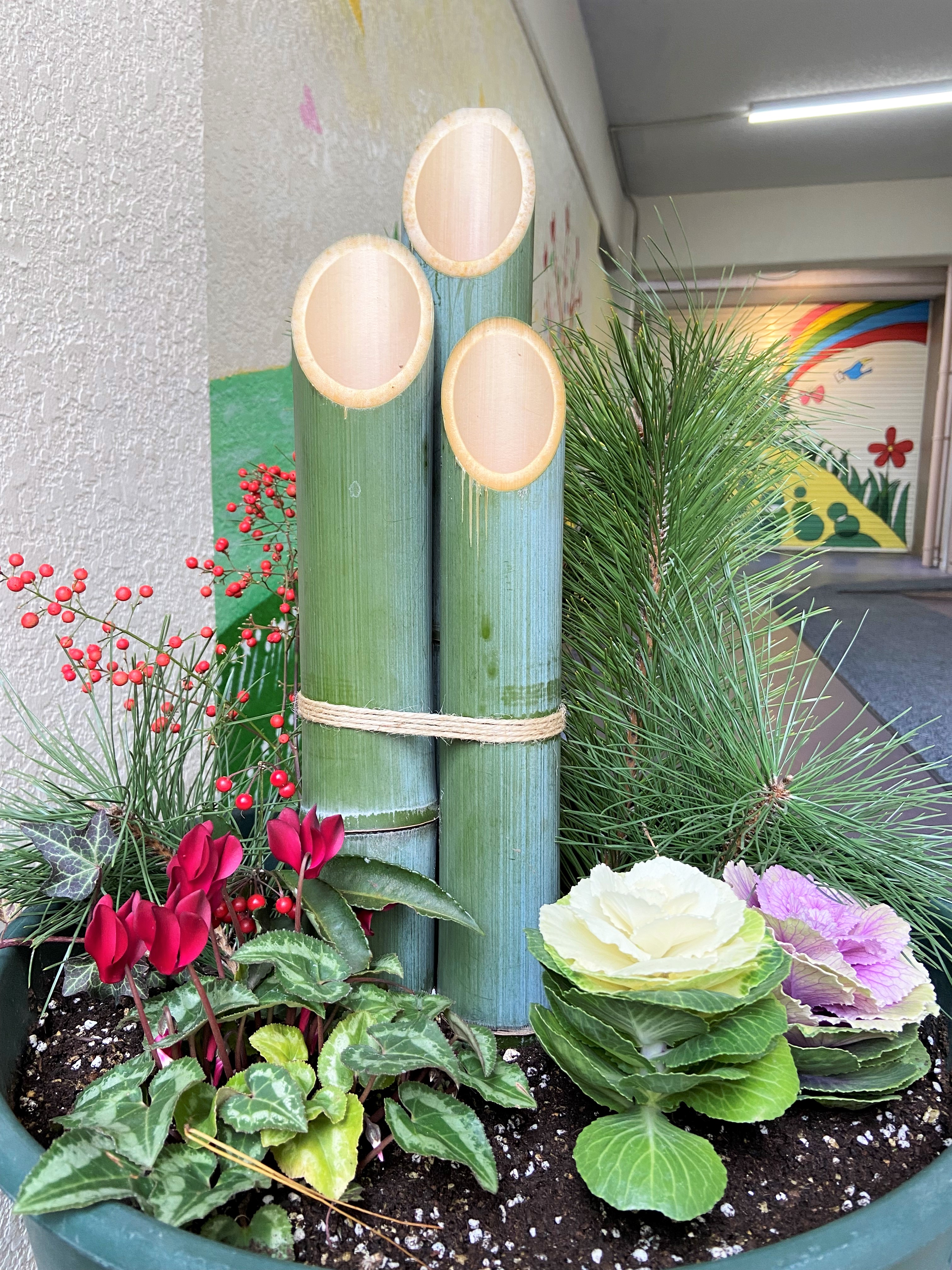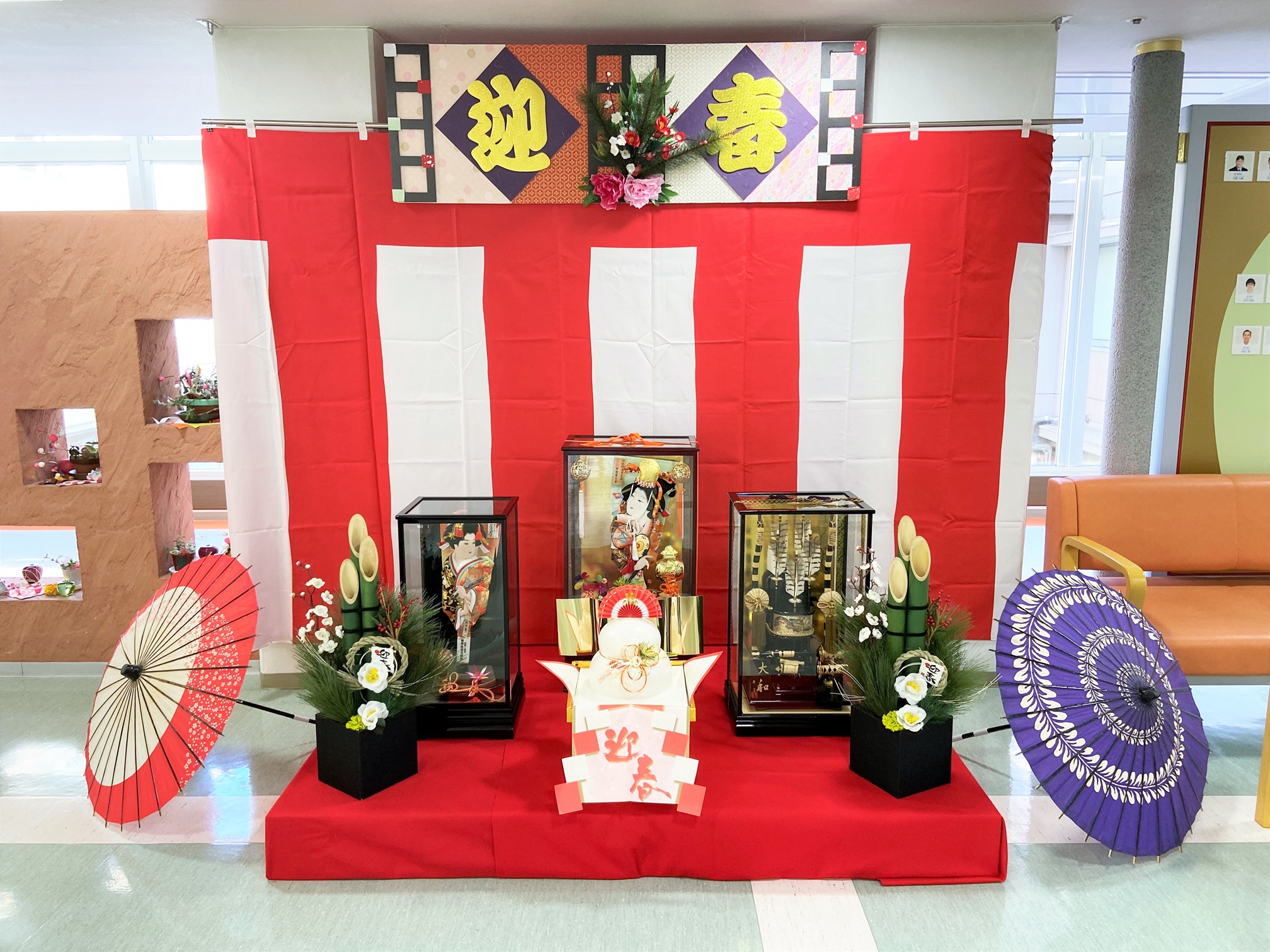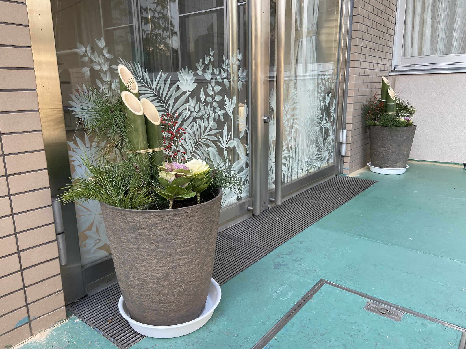 関屋病院のお正月 2023.01.04 お知らせ 院内各所のお正月の装いを、ご紹介します。 玄関 鏡餅、門松、羽子板などを飾っています。 スタッフ手作りの小さな飾りもあります。 あおぞら庭園 グリーンホスピタルプロジェクトでは、葉牡丹など季節の花を植えてお正月らしく設えました。 ハナミズキガーデンと職員通用口 手作りのミニ門松 竹はノコギリで切ってやすりがけをして仕上げた環境管理係のスタッフの自信作です。