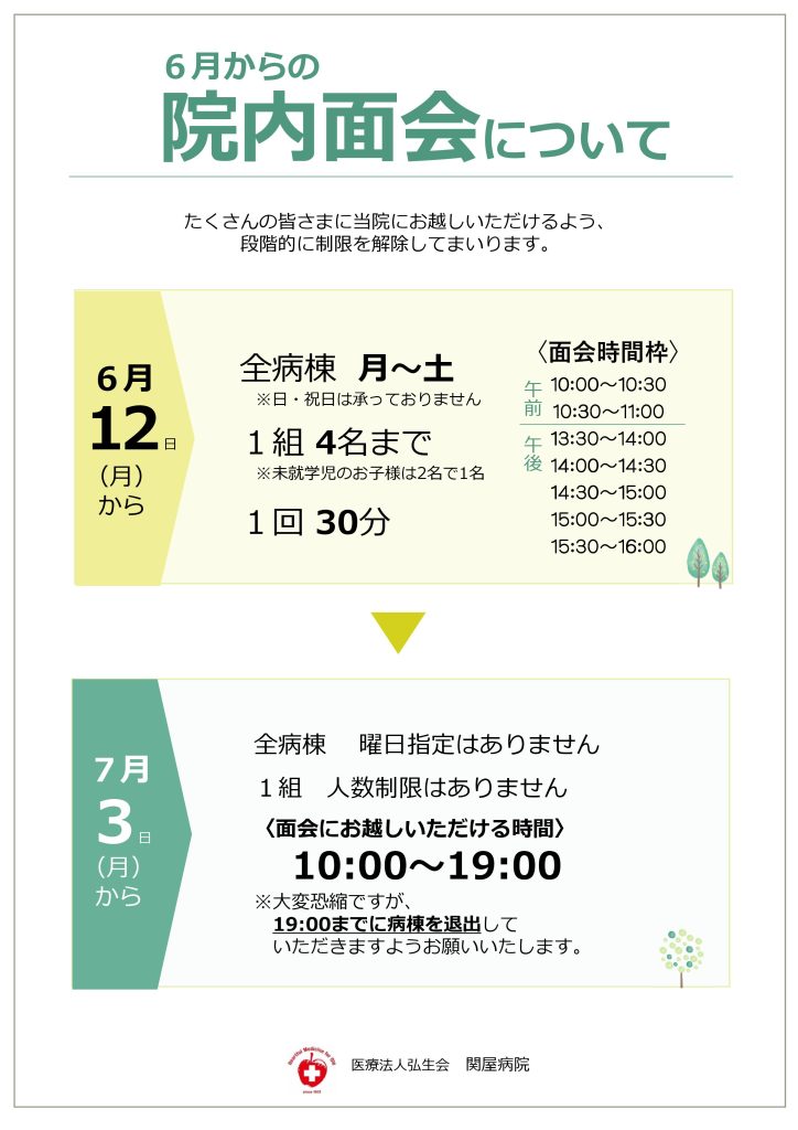 院内面会の制限を段階的に解除してまいります(6月12日~)