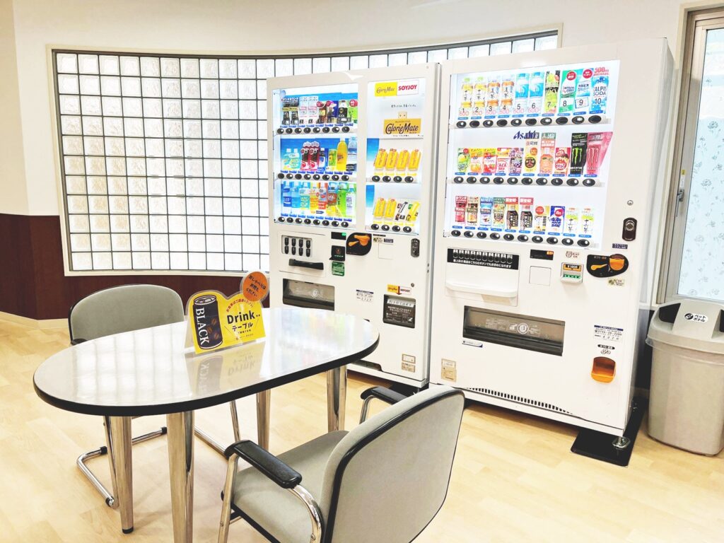 こんごう棟渡り廊下に設置している自動販売機の横にも面会スペースがあります。