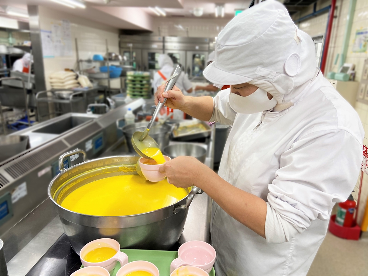 朝、厨房ではおかずの下ごしらえに精を出していました。