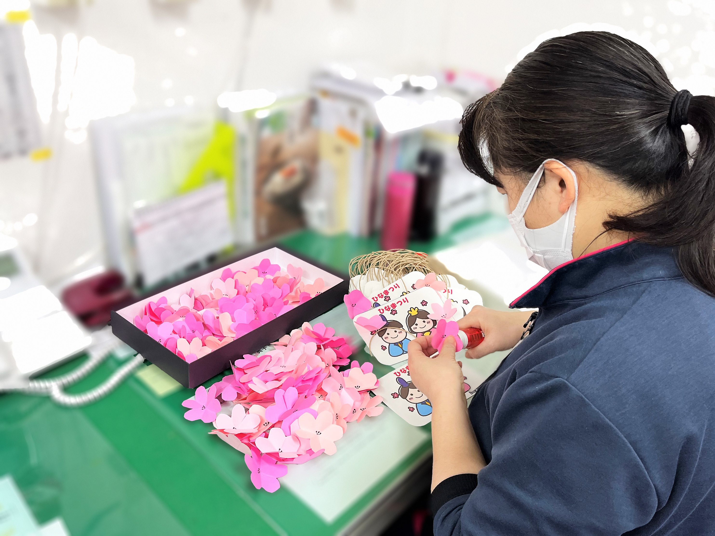 「お食事以外でも季節を感じていただければ」と思い、最近はお食事に手作りの品を添えるようにしています。患者さまはベッドサイドに飾られたり、飾りを眺めながらお食事を召し上がられたりされていました。喜んでいただけることがスタッフの励みとなっています。