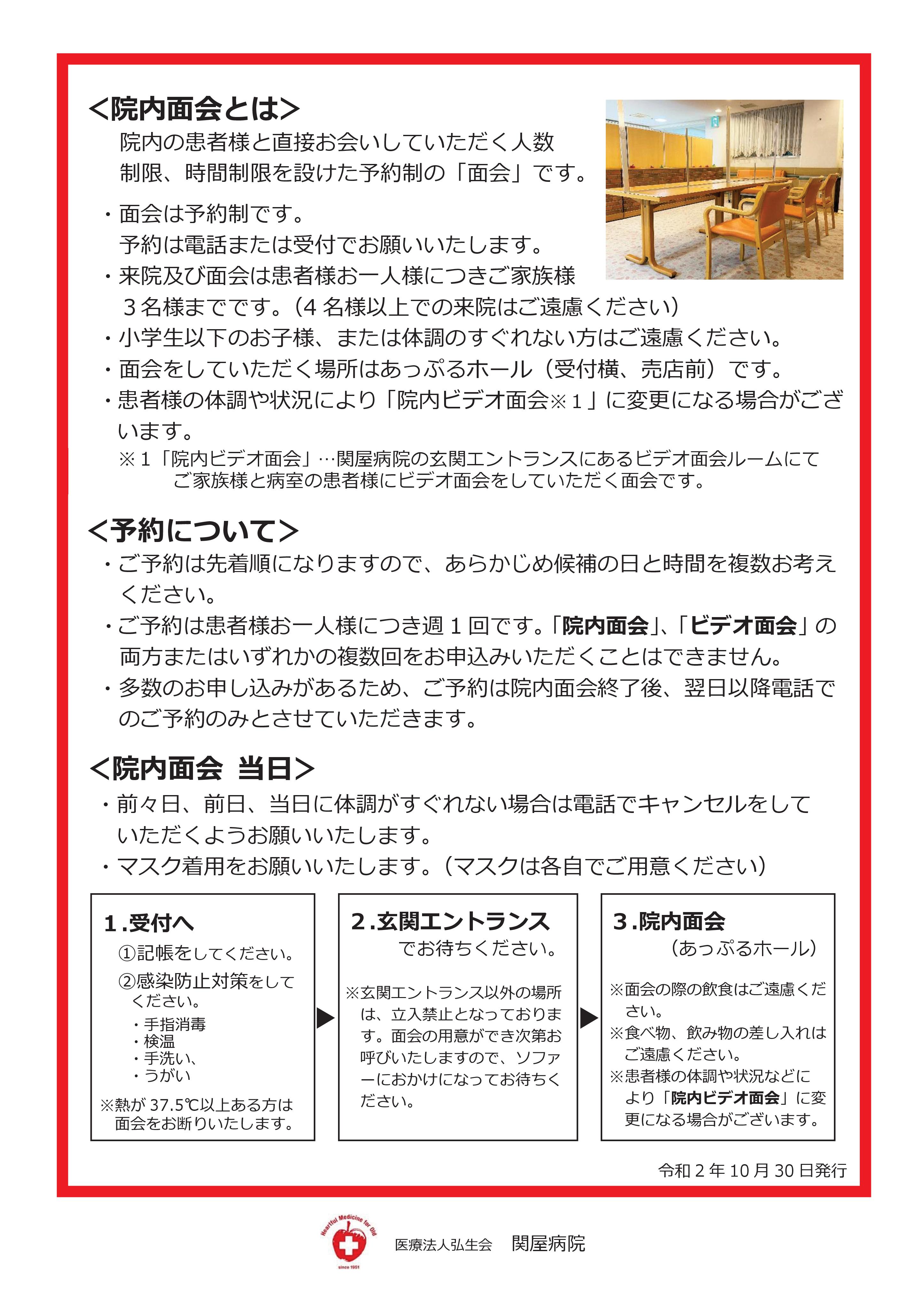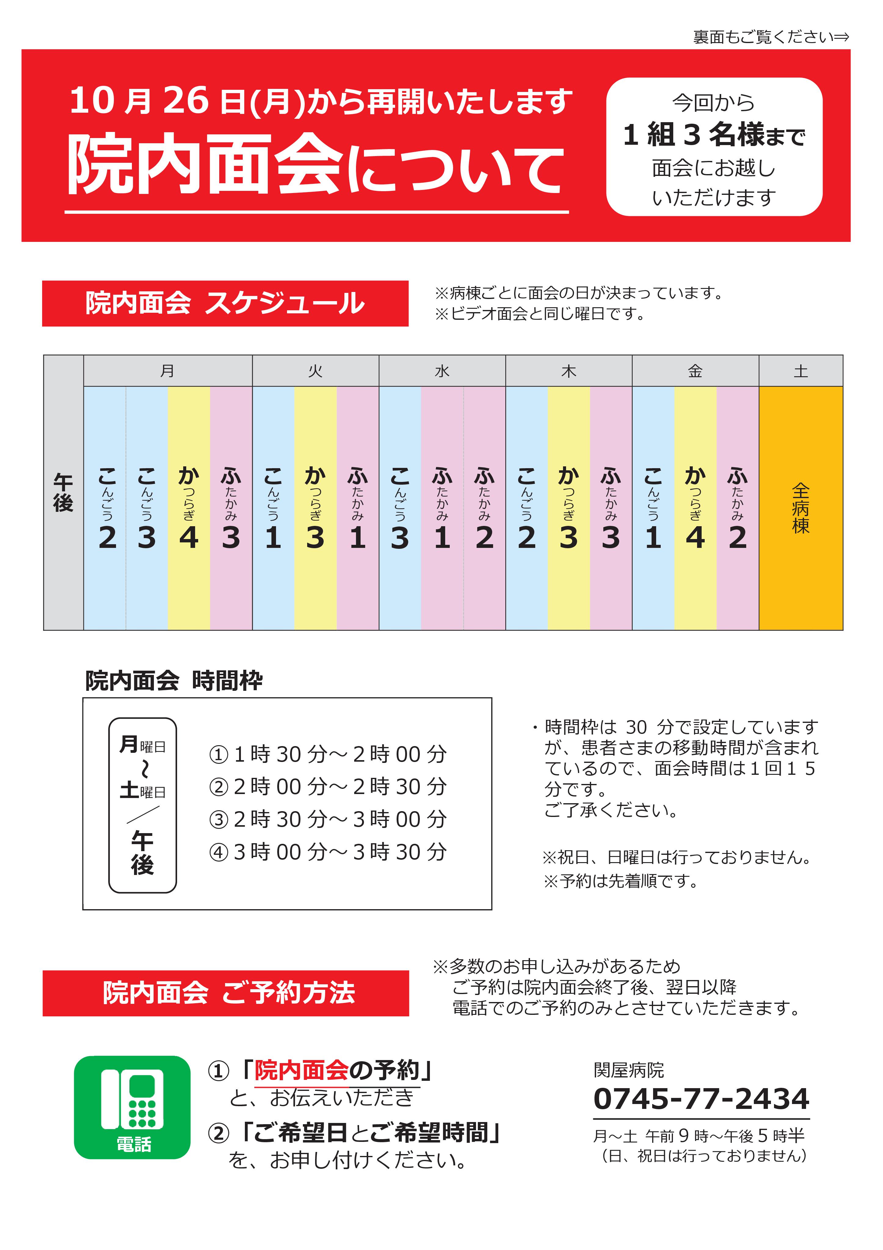 より多くの皆さまに院内面会にお越しいただけますようご協力をお願いいたします。