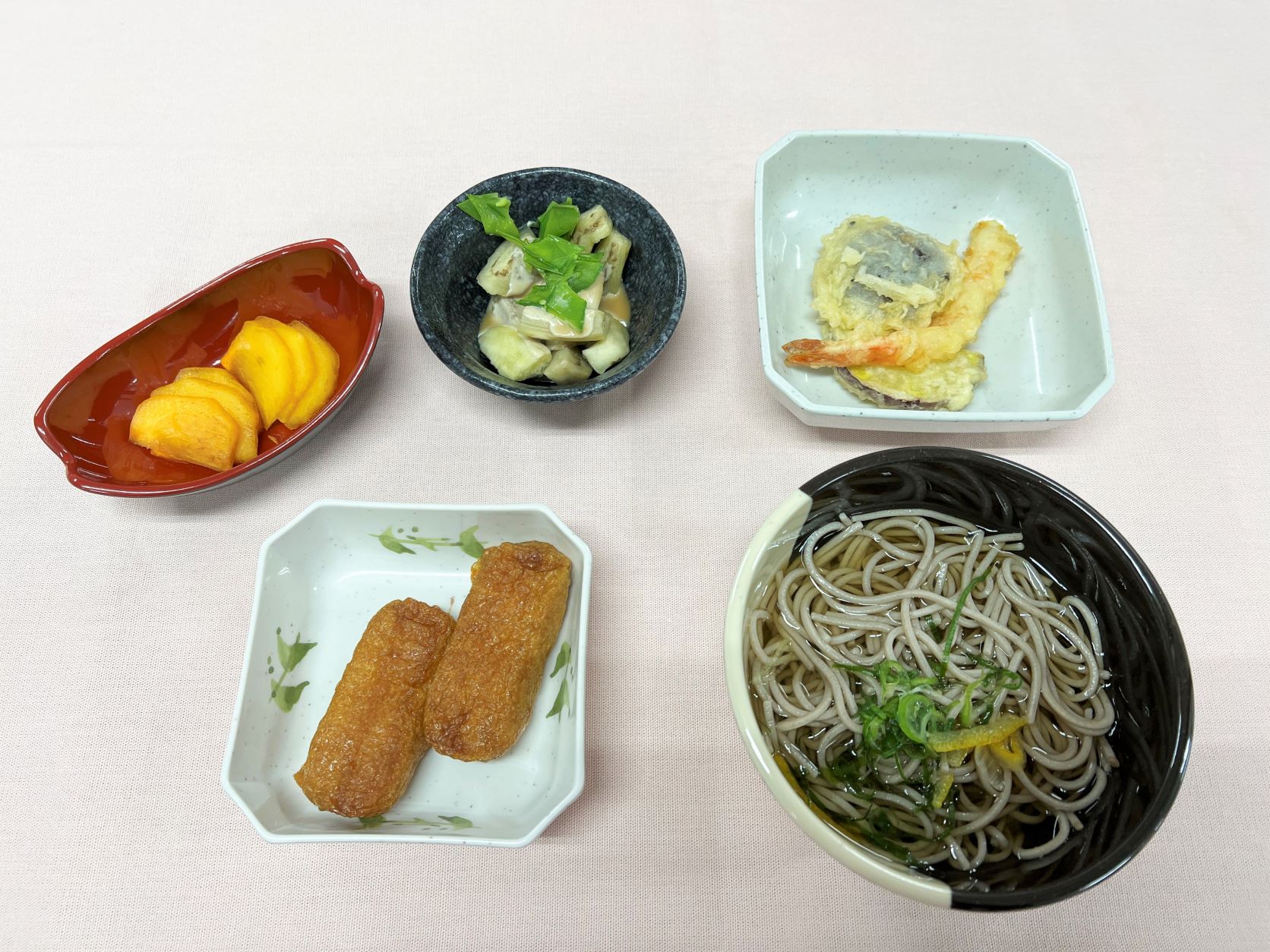 11月の ごちそう暦「天ぷらそば御膳」 2022.12.15 お知らせ 11月の ごちそう暦は「天ぷらそば御膳」でした。 秋の味覚をお楽しみいただければと、和そば、サツマイモやキノコ、柿などの旬の食材を用いて調理しました。 稲荷ずしを久しぶりに召し上がられ、稲荷ずしにまつわる思い出話をされる患者さまもおられました。 (りんご便り12月号より)