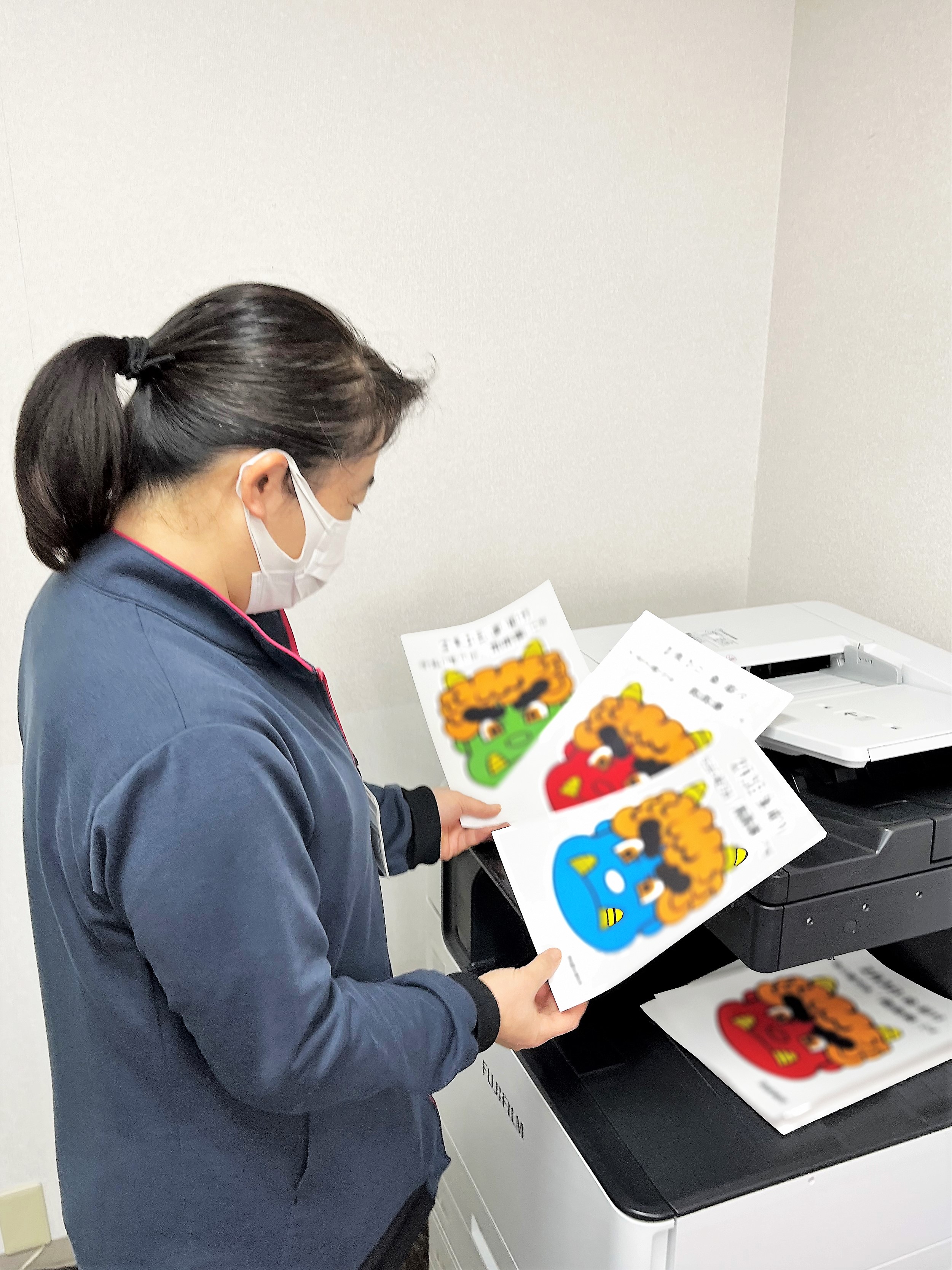 患者さまに楽しんでいただこうと管理栄養士が鬼のお面も用意しました。