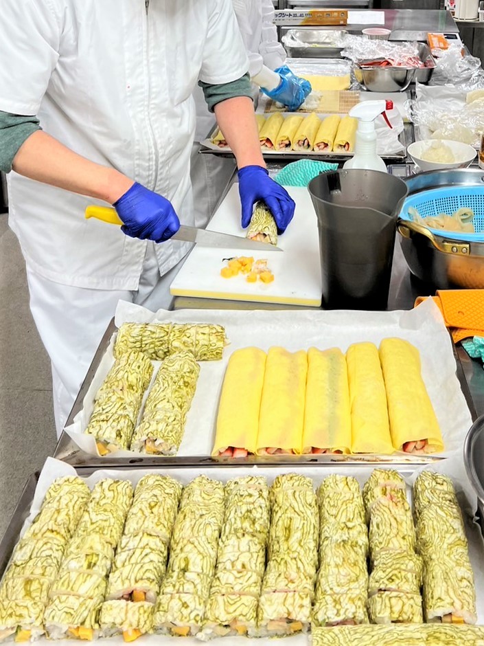 患者さまがかみ切りやすいように海苔は使わず、卵と昆布のシートを使った巻き寿司をお出ししたところ、患者さまからは「(海苔と違って)口にくっつかないから食べやすい」というお声をいただきました。