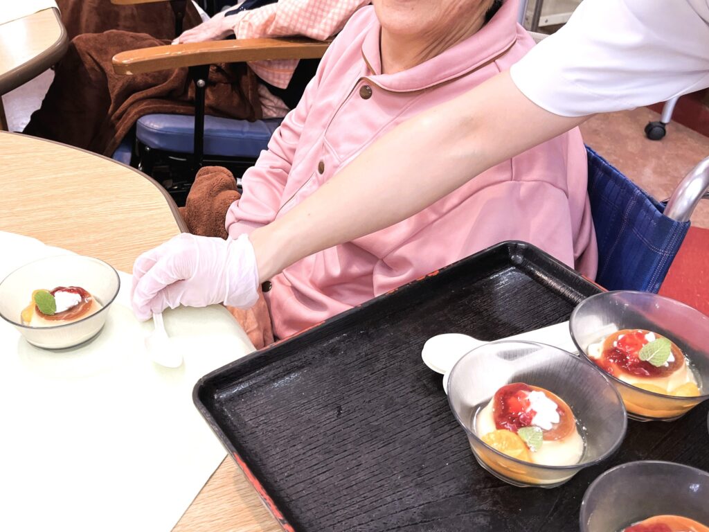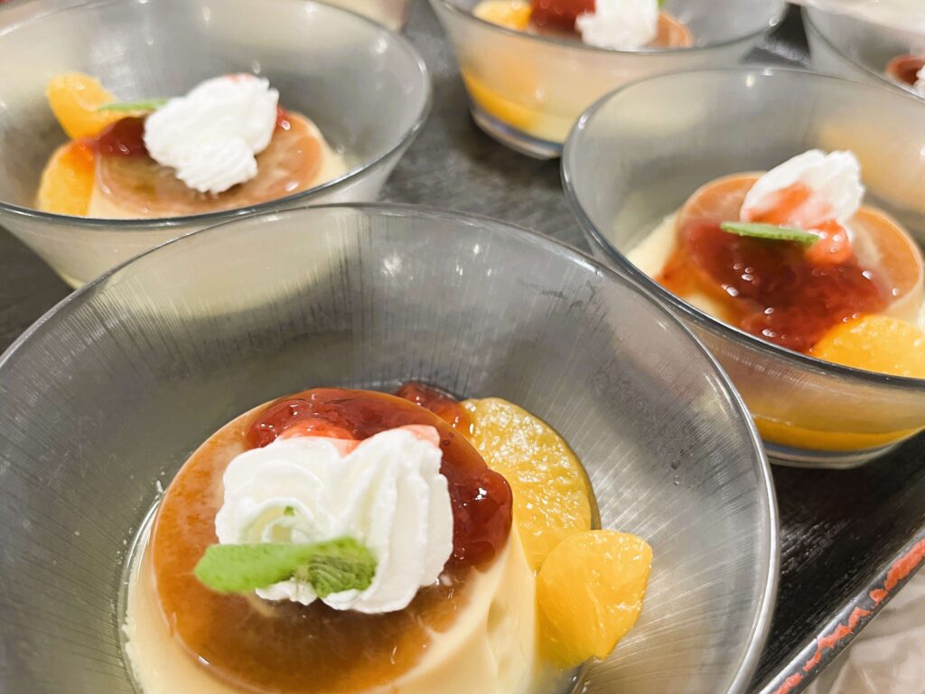 プリンアラモードをお召し上がりいただきました。