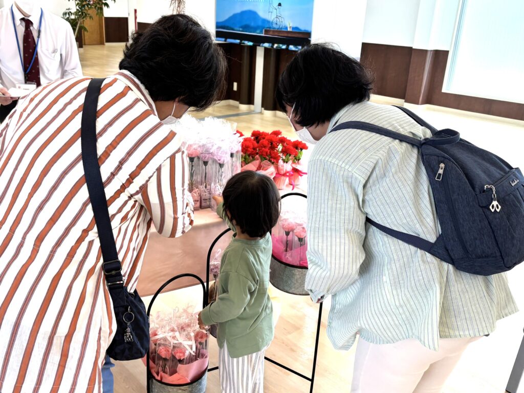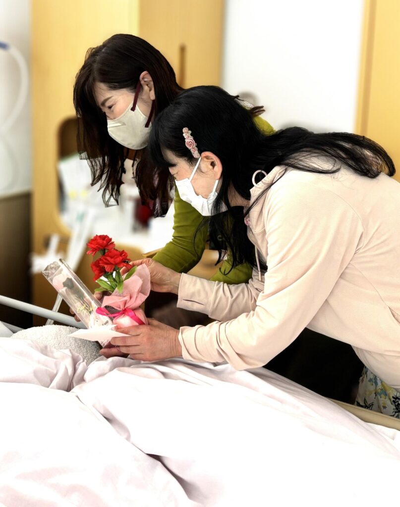 花や手紙を受け取られたご家族がそのまま面会へと向かい、