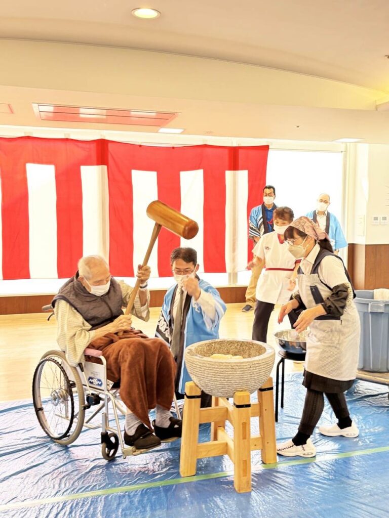 なんと、104歳の患者さまも参加し、しっかりと杵を振り下ろす姿には、スタッフ一同感動を覚えました。