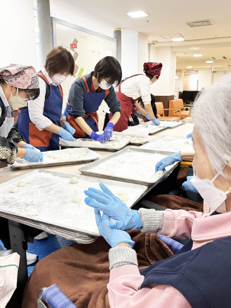 この作業にも患者さまたちが参加し、手際よくお餅を丸めておられました。