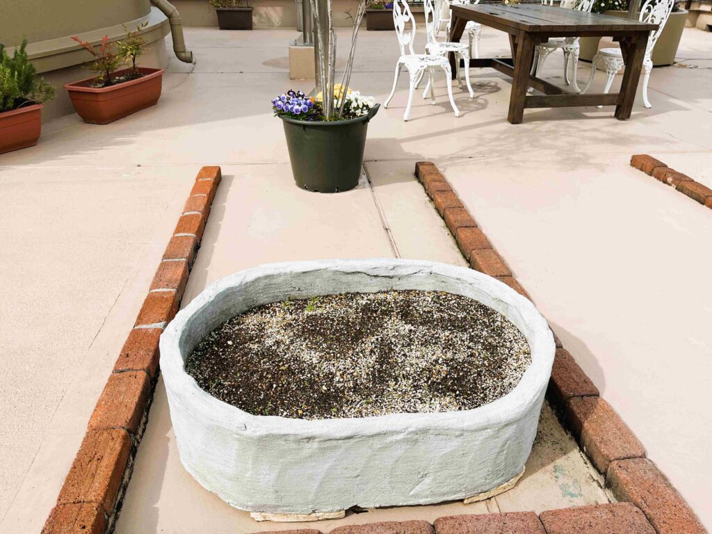 関屋病院では、3月上旬に施設管理室のスタッフお手製の大きなプランターが完成したので、カモミールの種を蒔いてみました。