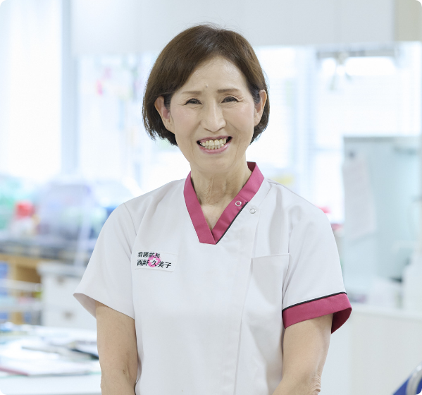 急性期を主としたものではなく、長い歴史を刻んでこられた高齢で慢性期の患者さまに、人生の終末期といわれる時期をどう迎え、どう過ごしていただければその人らしいのか、患者さまお一人おひとりの意思を尊重し、ご家族さまの思いも受け止めて、しっかり話し合い、双方の思いに寄り添い、少しでも安心して笑顔で生活していただけるよう心がけています。『ここに入院して良かった』『ここで生活できてよかった』の声が、私たち看護部の日々のやりがいに繋がっています。