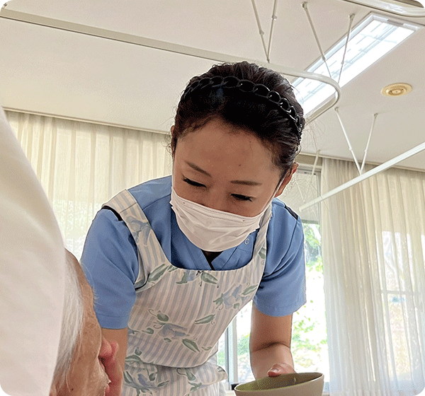 食事介助や排泄介助、入浴介助など、基本的に担当している仕事は以前の職場と変わりはありません。ただ、日中であれば、看護師の方がそばに常にいる状態でチームとして患者さまのケアにあたるので、介護スタッフの安心感は違うと思います。